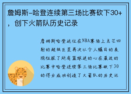 詹姆斯-哈登连续第三场比赛砍下30+,创下火箭队历史记录