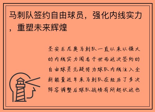 马刺队签约自由球员,强化内线实力,重塑未来辉煌